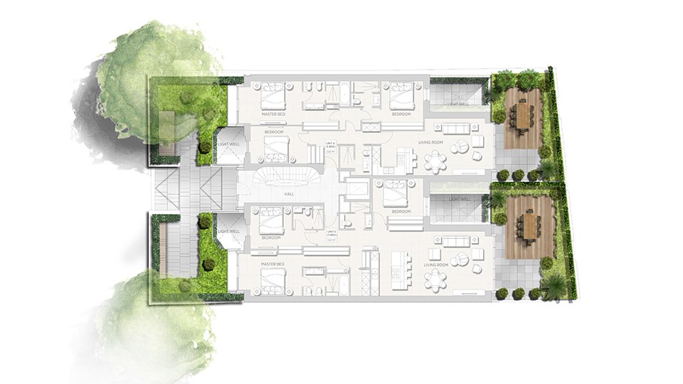 Our design focuses on creating a beautiful soft landscaped environment whilst at the same time maximising usable outside space. Whenever settling in the garden, the inhabitant should feel enveloped by the soft landscape. At both the front and back, an evergreen substructure of planting will provide year round interest and colour around which a palette of shade tolerant woodland edge planting will come and go with the seasons.