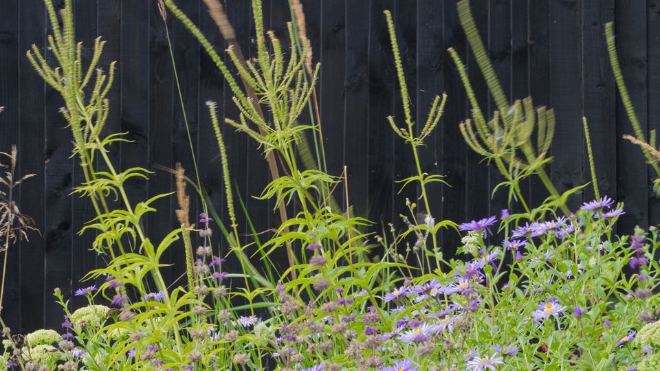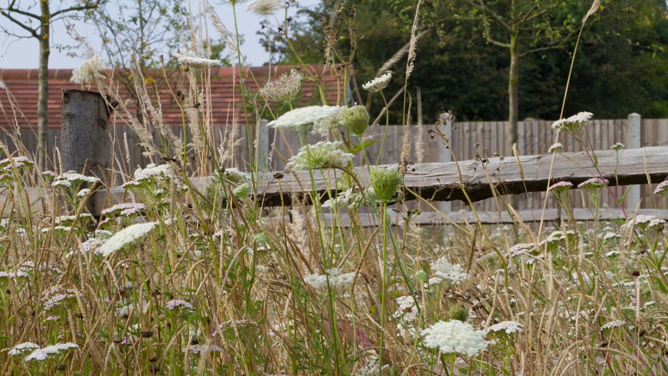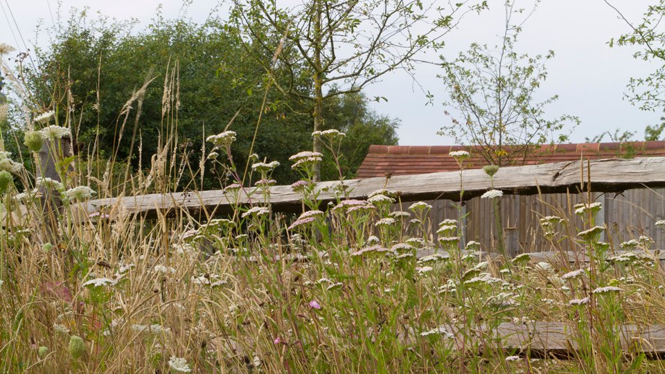 The style of building with its combination of brick and blackened weatherboard reminded us strongly of Le Jardin Plume in Normandy, itself crafted on the site of an old orchard and featuring a barn built from brick, oak and weatherboard and surrounded by a prairie-style blend of herbaceous perennials and ornamental grasses.