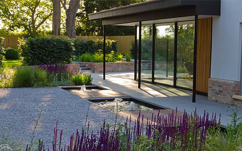 John Davies Landscape created a masterplan for a two-property Cambridgeshire project comprising of two similar looking garden plots linked together via a single curve which gently radiates towards the rear, creating interesting destination spots.